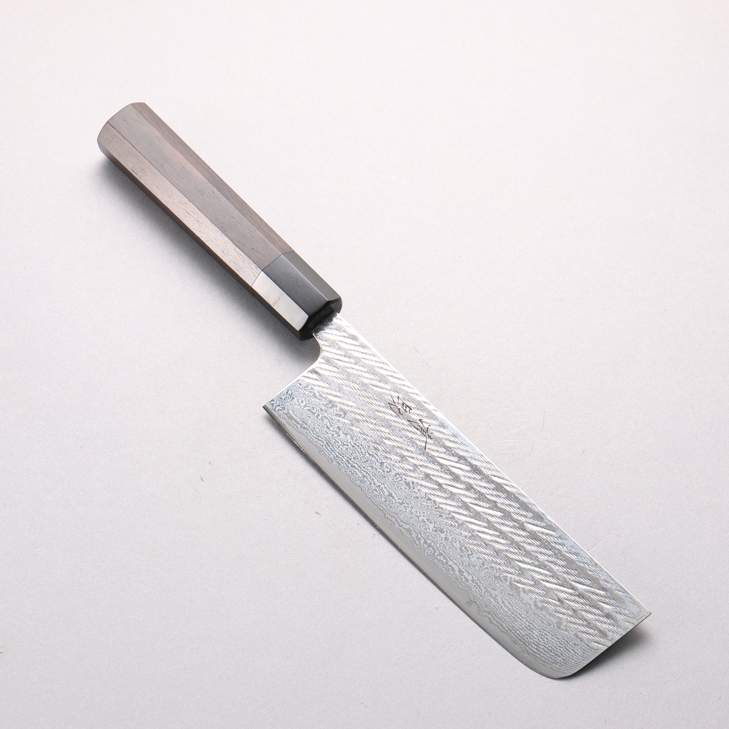 Seisuke Silver Steel No.3 Hammered Damascus Rope Pattern Nakiri 165mm Ebony Wood (ferrule: Black Water Buffalo Horn) Handle
