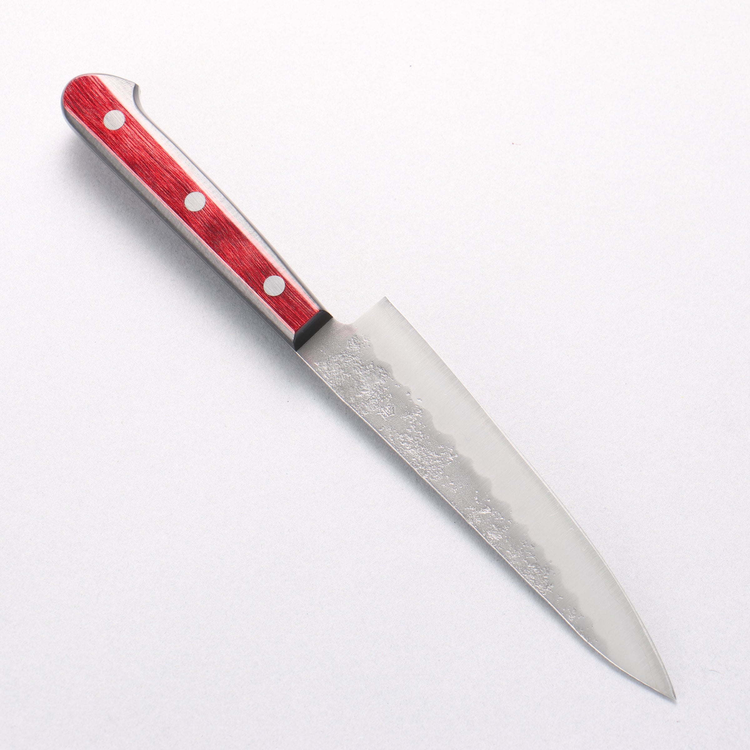 Seisuke Silver Steel No.3 Nashiji Petty-Utility 135mm Red Pakka wood Handle