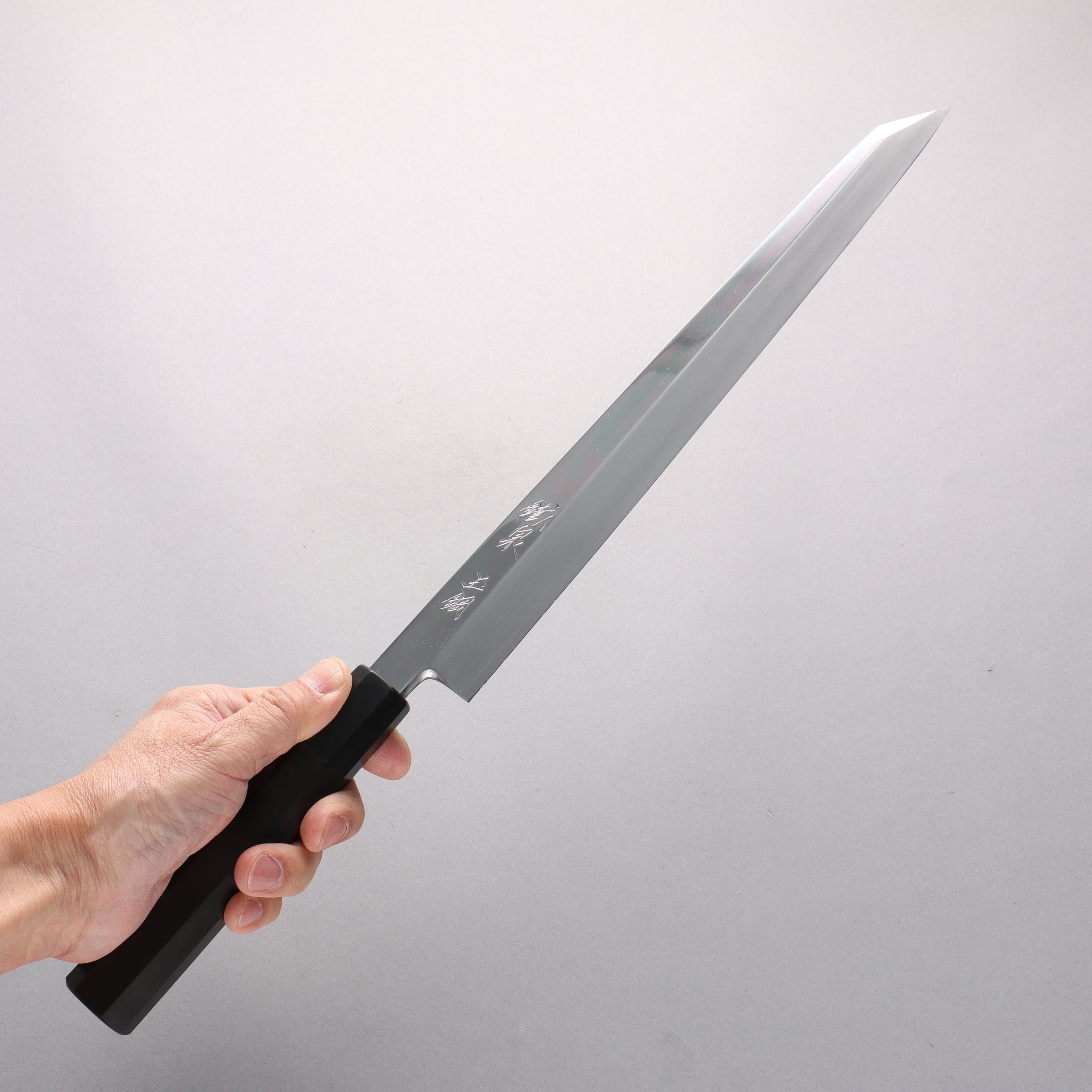 Tessen by Tanaka Tamahagane Mirrored Finish Kiritsuke Yanagiba 300mm Ebony Wood Handle with Sheath